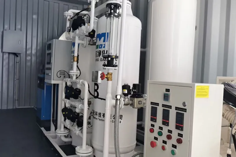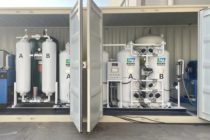 يعتمد مولد الأكسجين المصمم داخل حاوية على تصميم معياري مدمج يجمع بين تقنية (PSA) المتطورة، حيث صُمم هذا النظام للنشر في الأماكن الخارجية، والمواقع المؤقتة، والتطبيقات المتنقلة؛ حيث تشمل عملية التشغيل المعالجة الأولية لهواء التغذية، وفصل الأكسجين والنيتروجين بتقنية (PSA)، وتوصيل الأكسجين، وتجديد المادة الممتزة. وبالمقارنة مع مولدات الأكسجين التقليدية، توفر الوحدة المصممة داخل حاوية تنقلاً معززاً وتصميماً مدمجاً. كما يعد هذا النظام حلاً جاهزاً للتشغيل الفوري، حيث لا يتطلب غرفة معدات مخصصة، أو عمليات تركيب معقدة، أو اختبار تشغيل في الموقع. فضلاً عن ذلك، يسمح نظام التوصيل والتشغيل ببدء التشغيل السريع، حيث يمكن الحصول على أكسجين بالمواصفات المطلوبة خلال 30 دقيقة فقط، مما يجعل هذه التهيئة مثالية لإمدادات الأكسجين في حالات الطوارئ والتطبيقات المتنقلة.