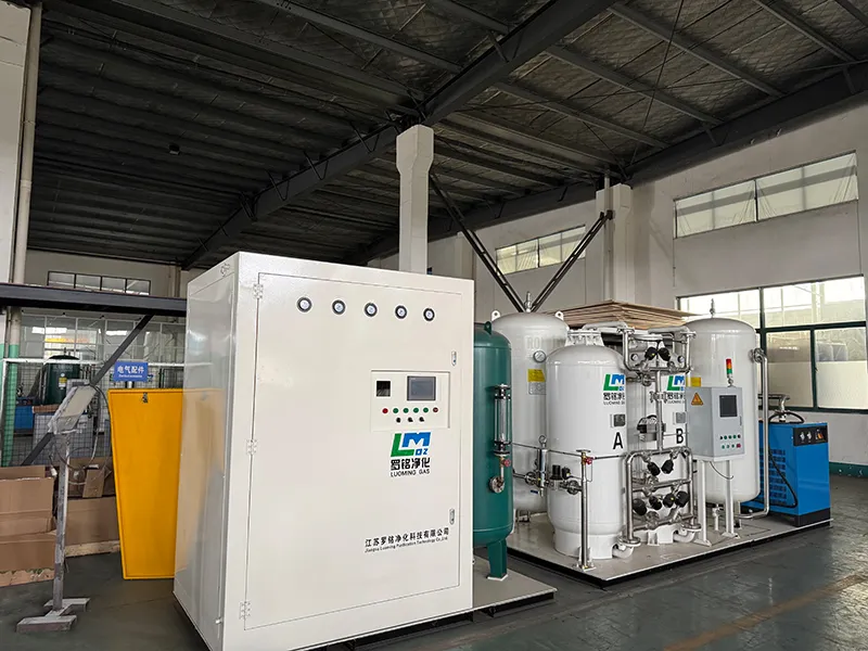 يدخل الأكسجين الناتج من المرحلة الأولى إلى وحدة التنقية (PSA) في المرحلة الثانية المعبأة بمنخل جزيئي طبي عالي الانتقائية. وتحت ظروف ضغط محسنة تتراوح بين 0.4 إلى 0.5 ميجا باسكال، كما يتم التخلص من النيتروجين المتبقي، وأول أكسيد الكربون، وأكاسيد النيتروجين، والشوائب النزرة. ويرتفع نقاء الأكسجين بشكل مستقر إلى 99.5 بالمائة أو أكثر، مما يمتثل تماماً لمعايير (GB8982-2009) الخاصة بأكسجين التنفس الطبي وفي الطيران، بما في ذلك نسب: أول أكسيد الكربون (CO ≤ 5ppm)، وأكاسيد النيتروجين (NOx ≤ 2ppm)، والرطوبة (أقل من أو يساوي 0.07 جم/م³). - المعالجة اللاحقة للأكسجين الطبي تضمن السلامة والقابلية للتكيف